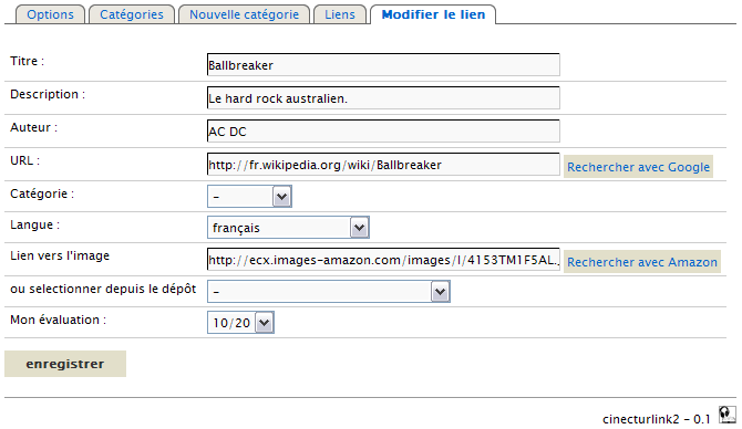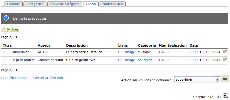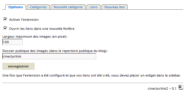 First install cinecturlink2, manualy from a zip package or from Dotaddict repository. (See Dotclear’s documentation to know how do this)